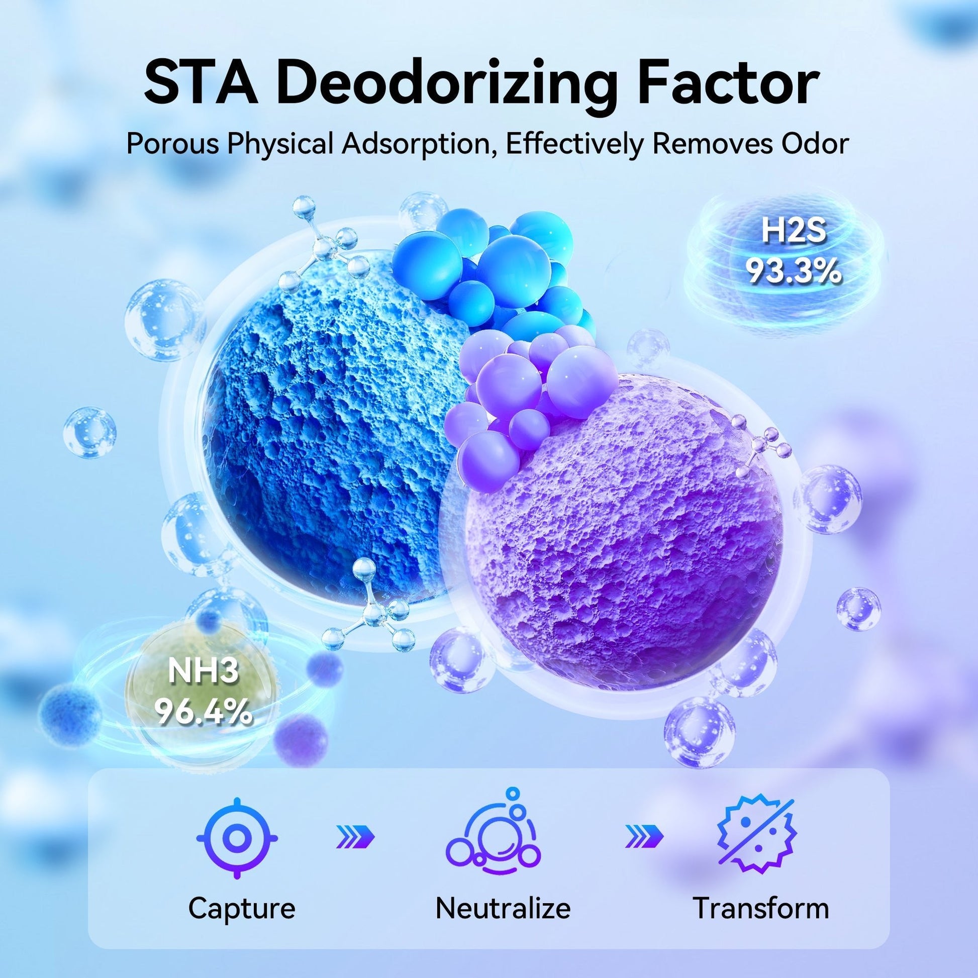 - Advanced Odor Elimination: Plant-based enzymes, O2-STA technology, and zeolite neutralize odors effectively.