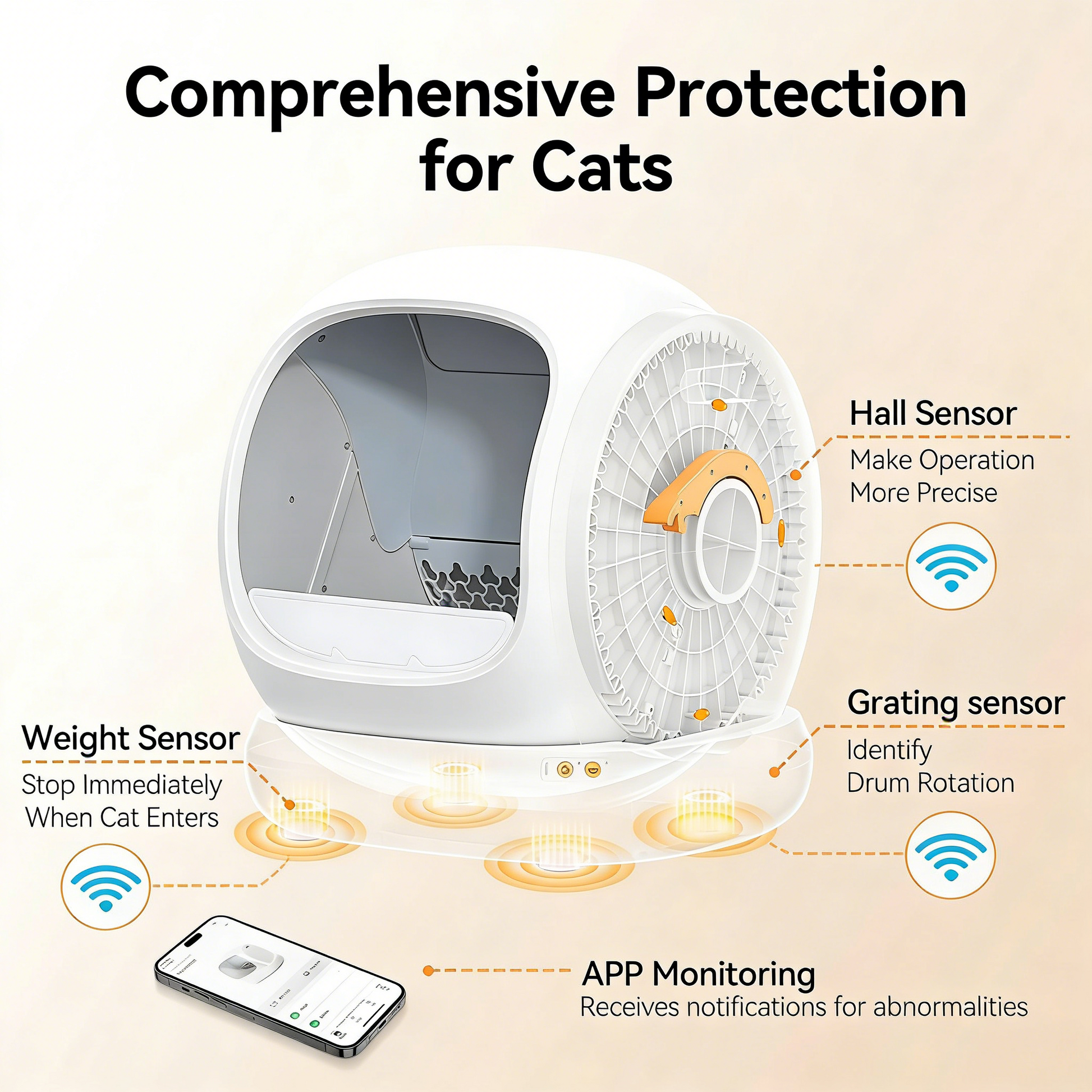 - Anti-Pinch & Alerts: The integrated anti-pinch structure and 9 sensors ensure 100% safety by preventing cats from getting caught. Please do not put the mat under the litter box to avoid weighing errors!